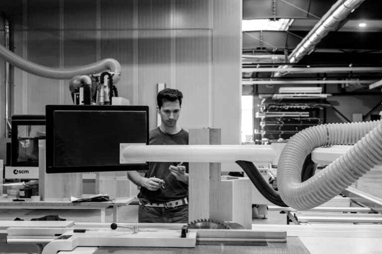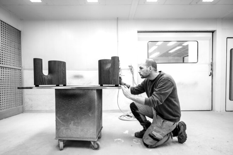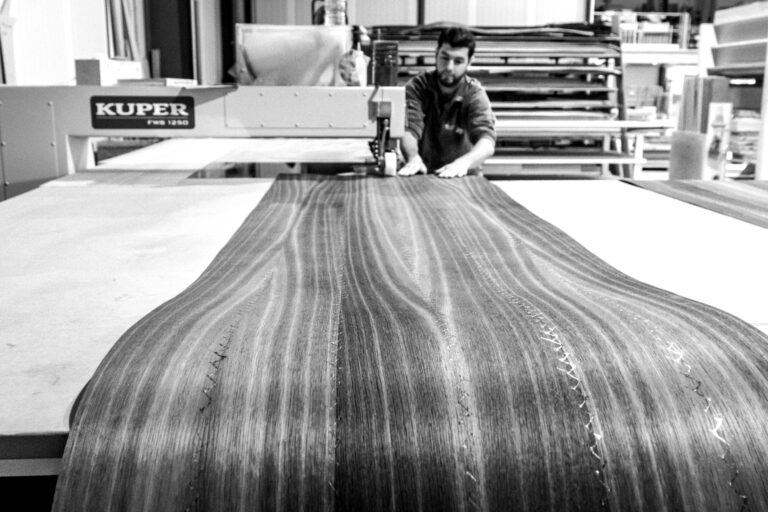Au fil des ans, nous n’avons cessé de perfectionner notre outil de production : étuve pour ajuster l’hygrométrie des bois, centres d’usinage cinq axes, laboratoire de préparation des teintes, espace dédié aux finitions et vernis, etc. Un équipement qui garantit autant la régularité de notre fabrication que le bien-être de nos équipes.