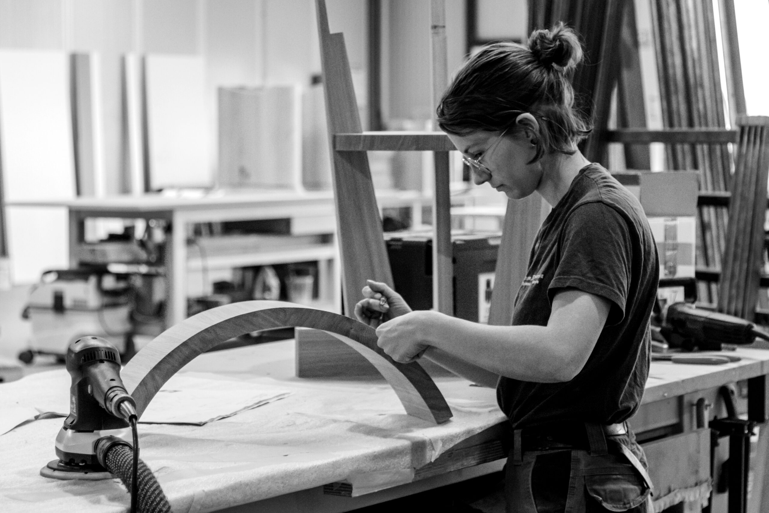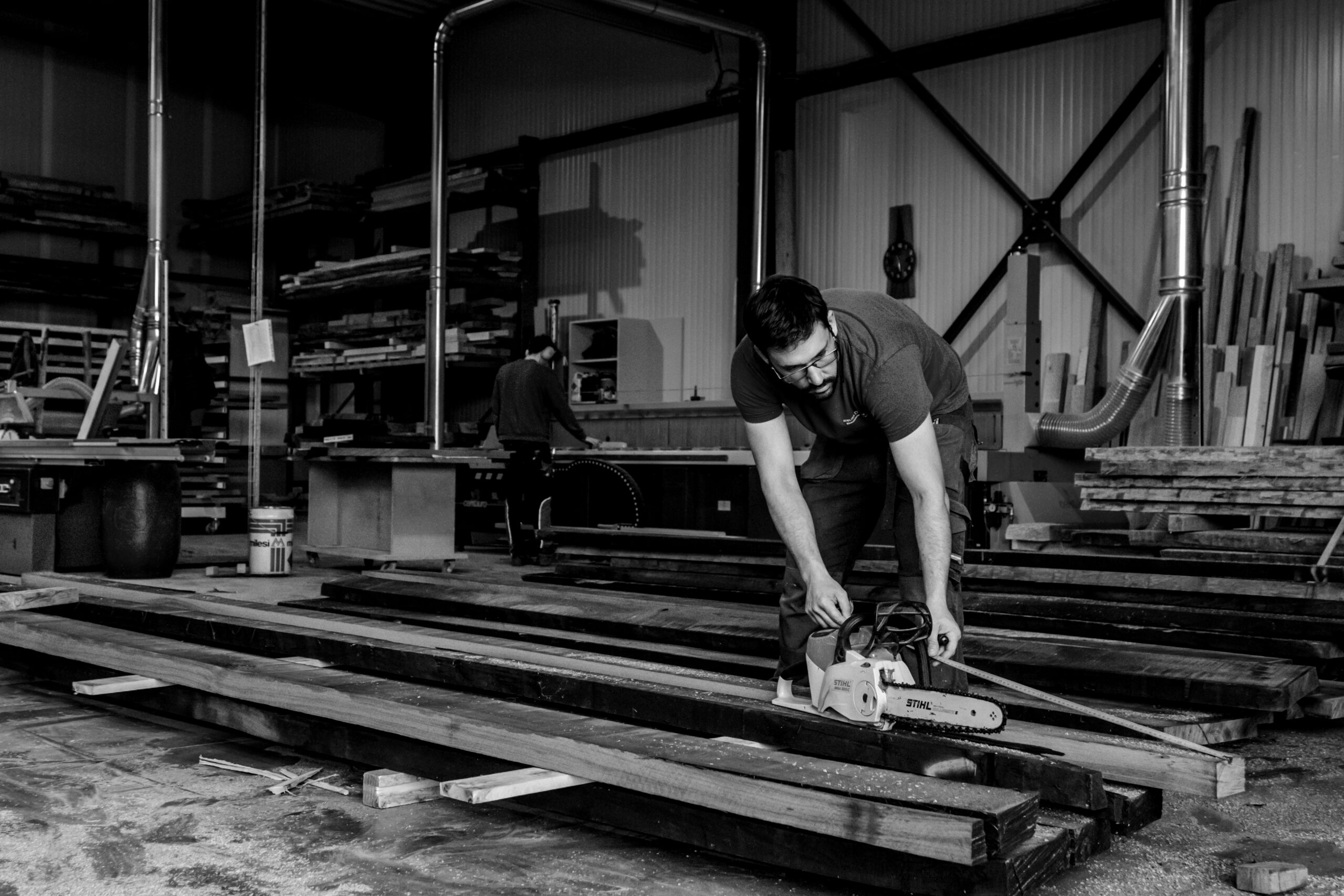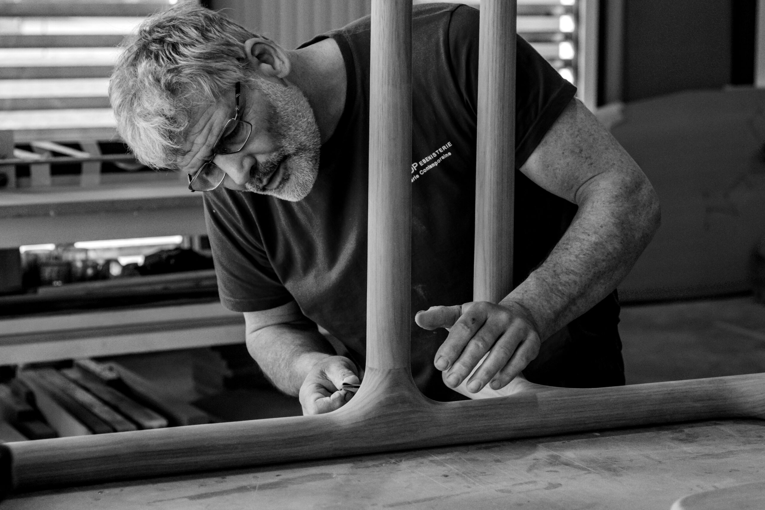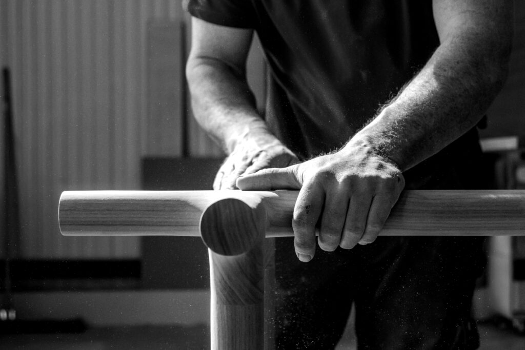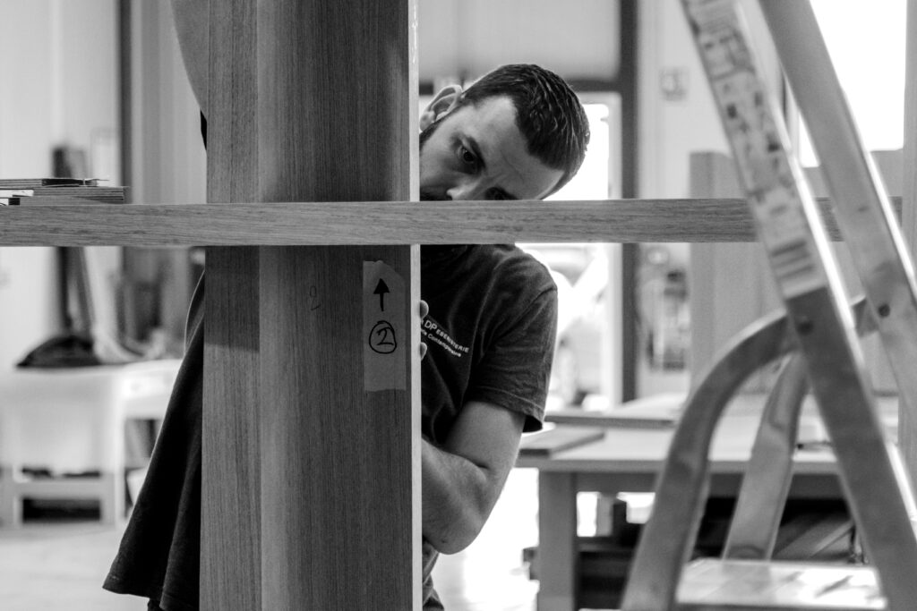 De l’étude à la conception, de la découpe aux finitions, notre atelier compte plus de 30 personnes et de nombreux métiers : ébénistes, sculpteurs, dessinateurs, etc. Chacun de nos artisans est garant de la qualité de sa pièce de la phase de débit jusqu’aux portes de la finition. Nous offrons des parcours de formation allant de l’apprentissage jusqu’aux études supérieures.